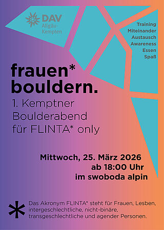 Unser breit gefächertes Veranstaltungsprogramm für Sektionsmitglieder umfasst rund 550 Veranstaltungstage im Jahr: Ausbildungskurse, Gemeinschaftstouren, Angebote indoor & outdoor - im Sommer und im Winter.