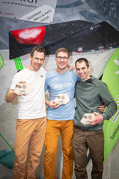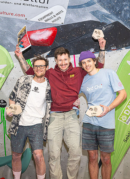 In den Altersklassenwertungen, die aus dem Halbfinalergebnis herausgerechnet wurden, war es in diesem Jahr besonders spannend: Vor allem in den Ü-Klassen waren im Vergleich zu den Vorjahren noch einmal deutlich mehr Teilnehmer*innen vertreten und zeigten, dass auch im reiferen Alter noch ganz schön schwer gebouldert wird. Am Ende machten hier in der Ü50 Patricia Bauer und Elmar König das Rennen, gefolgt von Eva Hammächer-Keller und Ilhan Aslan auf Platz zwei sowie Uli Wachter und Michael Weiss auf Rang drei. In der Klasse Ü40 wiederholten Sarah und Mario Ziebold ihre Siege aus dem letzten Jahr, auf Platz zwei boulderten Lisa Thiemann und Markus Musil, gefolgt von Alexandra Gotschke und Alex Scola. Die Siege in der U16-Klasse gingen an Aleksandra Mishan und Samuel Fischle, Platz zwei an Milla Waidelich und Jonathan Richter, Platz drei an Ronja Mayer und Balduin Hintze.