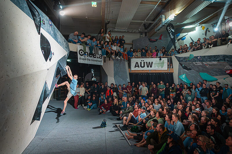Die AÜW Allgäu Moves haben sich mittlerweile zu einem echten Klassiker in der süddeutschen Kletterszene etabliert und zogen auch bei der mittlerweile siebten Auflage wieder über 320 Boulderer aller Alters- und Leistungsklassen an. Damit gehört der Wettkampf zu den teilnehmerstärksten Kletterwettkämpfen Deutschlands. Nach sieben Wochen Qualifikationszeit, in denen die Teilnehmerinnen und Teilnehmer möglichst viele der 120 Qualifikationsboulder klettern mussten, standen die besten 80 weiblichen und 80 männlichen Teilnehmer fest, die es ins Halbfinale geschafft hatten. In den Wochen zuvor hatten die Allgäu Mover wieder gemeinsam an den Qualifikationsbouldern getüftelt und den ganz besonderen Spirit der Allgäu Moves gelebt, bei dem sich Kletter*innen aller Alters- und Leistungsklassen gegenseitig anfeuern und helfen, die Boulder zu knacken. Auf die besten 80 Damen und Herren des Rankings warteten am vergangenen Samstag beim Halbfinalevent schließlich noch einmal 35 brandneue Boulder.