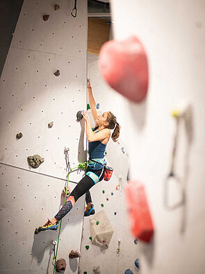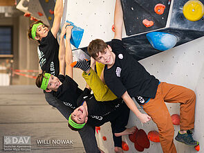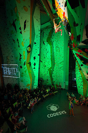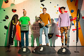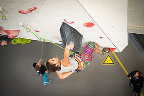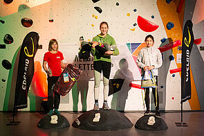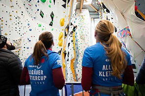 Aber es ging beim Edelrid Allgäuer Klettercup natürlich nicht nur um das beste Outfit, sondern in erster Linie um die besten Kletterer in den drei Wertungsklassen. Hier hatten am Ende bei den Damen und Herren die Favoriten die Nase vorn: Catrin Gorzellik holte sich den Sieg bei den Damen mit einer souveränen Topbegehung der Finalroute. Die 19-Jährige, die in Kempten studiert und für den DAV Reutlingen antritt, hatte in diesem Jahr bereits den deutschen Vizemeistertitel im Olympic Combined geholt und war Anfang November Sechste bei der Deutschen Meisterschaft im Lead geworden. Hierfür hatte sie sich als amtierende Süddeutsche Meisterin qualifiziert. Hinter Gorzellik belegte mit der 16-Jährigen bayerischen Lead-Meisterin Magdalena Schmidt (DAV München-Oberland) eine weitere national erfolgreiche Kletterin Platz zwei vor Luisa Thomas (20) aus Heilbronn. Leonie Waldhäuser auf Platz 6 hielt die Fahnen unserer Sektion hoch.