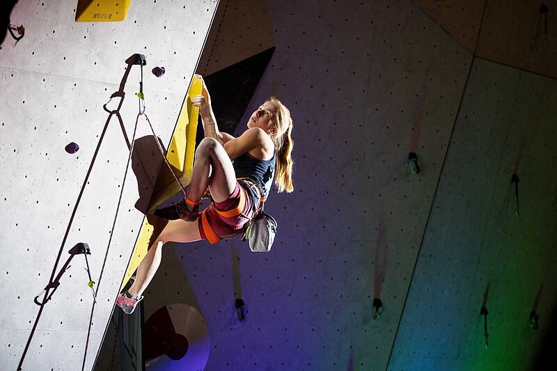 Für die deutsche Kletterelite war es der erste Wettkampf nach fast zwei Jahren, bei dem wieder Zuschauer zugelassen waren: Bei der Deutschen Meisterschaft im Lead trafen sich am vergangenen Wochenende die besten Damen und Herren im Landesleistungszentrum Augsburg, um die Meisterinnen und Meister zu ermitteln. Vor allem die Tatsache, endlich wieder vor Zuschauern klettern zu dürfen, freute die insgesamt 31 Damen und 40 Herren, die sich zuvor entweder über die Regionalmeisterschaften oder den Nationalkaderstatus für die Deutsche Meisterschaft qualifiziert hatten. Auf die Starterinnen und Starter wartete ein harter Tag in Augsburg: Zuerst galt es, zwei Qualifikationsrouten zu klettern, aus dem die besten 26 für das Halbfinale ermittelt wurden. Hier qualifizierten sich wiederum die besten Acht für das Finale am Abend, bei dem frenetisch anfeuernde Zuschauer und eine stimmungsvolle Lightshow auf die Teilnehmerinnen und Teilnehmer warteten.