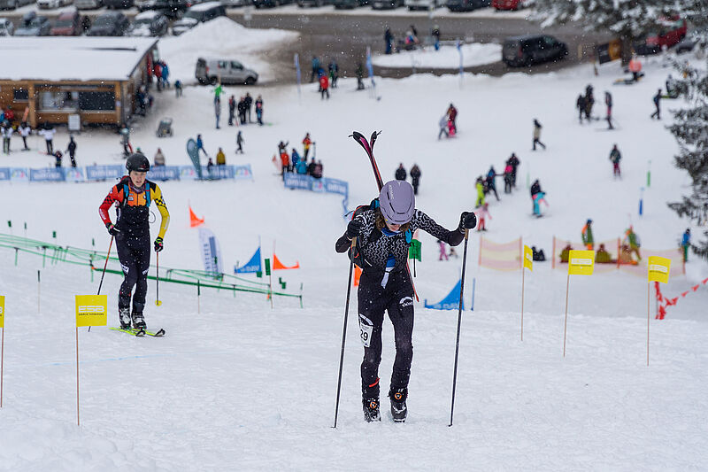 Bei den Damen machte wie im Vorjahr die in Füssen wohnende österreichische Topläuferin Johanna Hiemer vom WSV Schladming das Rennen. Nachdem sie schon am Vortag beim Sprint siegreich gewesen war, gewann sie auch das Vertical in 30:10 Minuten – dieses Mal mit deutlichem Vorsprung von über einer Minute vor der neuen deutschen Meisterin Tatjana Paller. Tagesdritte und damit Zweite in der DM-Wertung wurde Luisa Paller (DAV Berchtesgaden) vor Sarah Kistner auf Rang drei.