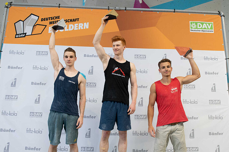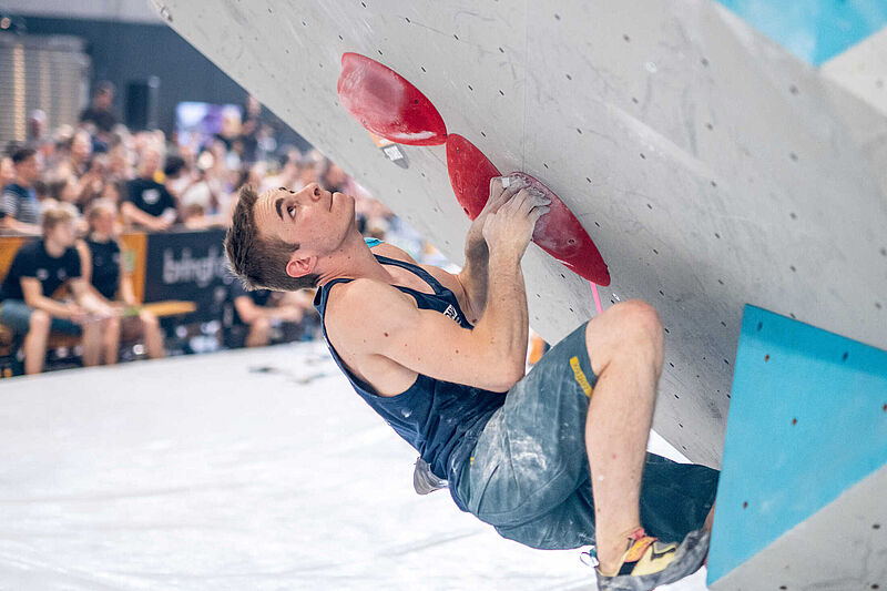 Eigentlich ist er ja ein ausgewiesener Spezialist für die Kletterdisziplin mit Seil: Philipp Martin hatte sich zuletzt aber bei den Boulder-Weltcups die entsprechende Form antrainiert, so dass er auch bei der am vergangenen Wochenende in Dortmund ausgetragenen DM im Bouldern zum Favoritenkreis gehörte. Bei Temperaturen von über dreißig Grad hatten die Teilnehmer nicht nur mit den Bouldern zu kämpfen - das Finale wurde zur echten Hitzeschlacht. Mit drei von vier gekletterten Bouldern musste sich Philipp am Ende nur dem überragend aufkletternden Max Prinz (DAV Alpinclub Hannover) geschlagen geben. Damit holte sich Philipp nach dem Vizemeistertitel im Lead nun auch den Vizemeistertitel im Bouldern und kann sich nun auf die in Kürze anstehenden Weltcups in seiner Paradedisziplin Lead konzentrieren.
