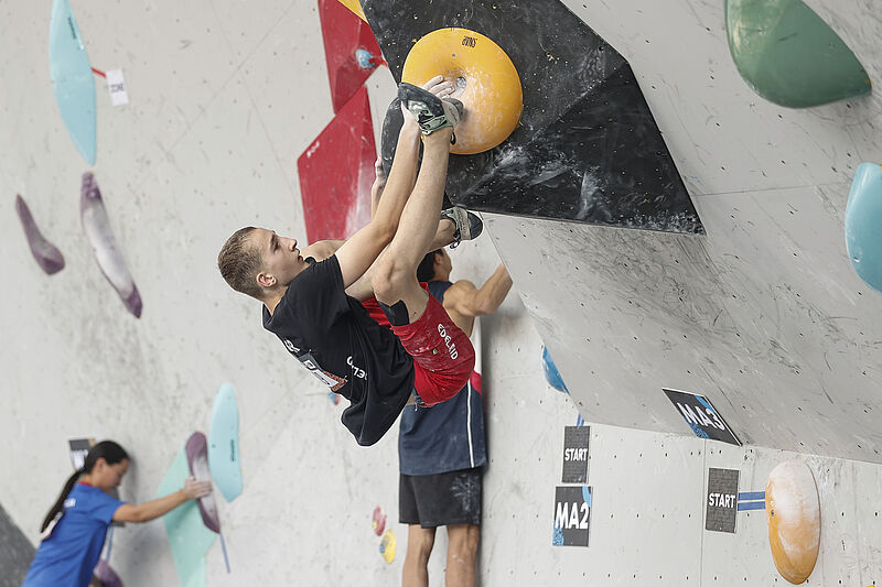 Das lange Warten hatte aber anscheinend keine Auswirkungen auf Timos Form: Nach Platz sechs in der Qualifikation reichte es ihm auch im Halbfinale für Rang 6 und damit gerade noch für einen Finalplatz. Dort warteten dann vier harte Boulder auf die Finalisten. Nur zwei Teilnehmer konnten zwei Boulder klettern – der Rest des Feldes musste sich mit maximal einem gekletterten Boulder zufriedengeben. So auch Timo, der nach einem erfolgreichen Top an Boulder eins leider auch nur noch eine weitere Zonenwertung holen konnte. Damit reichte es ihm am Ende für Rang fünf – als bester Europäer hinter dem Weltmeister aus Korea und drei Japanern. Die asiatischen Nationen dominierten in diesem Jahr wie noch nie zuvor die Jugend-WM: Ein Großteil der Medaillen ging nach Japan, Korea, China und Thailand. Bislang waren die asiatischen Nationen vor allem im Bouldern und im Speedklettern erfolgreich gewesen – bei dieser WM dominierten sie jedoch erstmals auch die Lead-Wettbewerbe mit Seil – eigentlich traditionell die Kerndisziplin der Europäer.