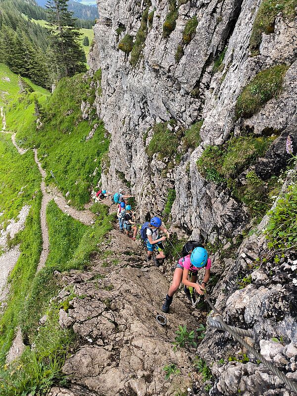 Bei uns ist jede/r Bergbegeisterte von 14 bis 17 Jahren herzlich willkommen. Wir sind eine reine Outdoorgruppe und der Spaß steht bei uns an erster Stelle. In unserer Gruppe unternehmen wir Touren in der Allgäuer Bergwelt, die meistens freitagnachmittags stattfinden. Deshalb versuchen wir immer, keine allzu langen, aber dennoch attraktive Touren zu finden. Wenn ein Termin in die Ferien fällt, steht allerdings auch einmal eine Tagestour an.