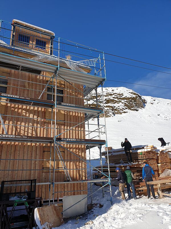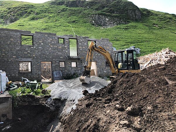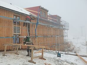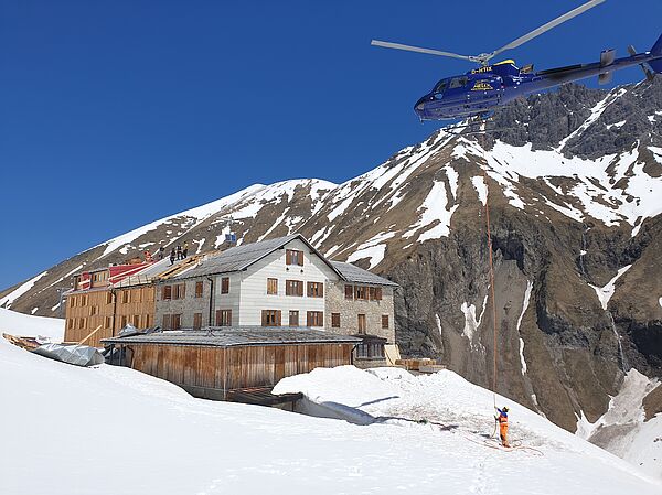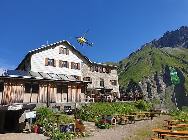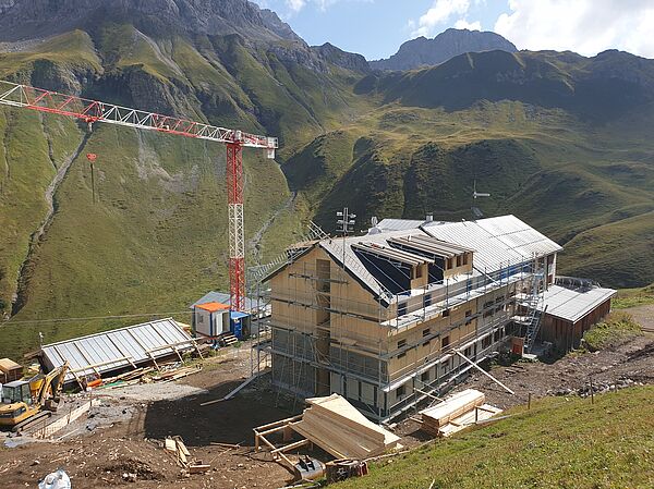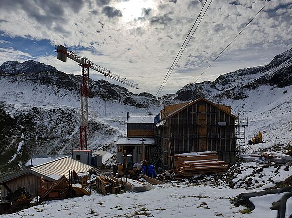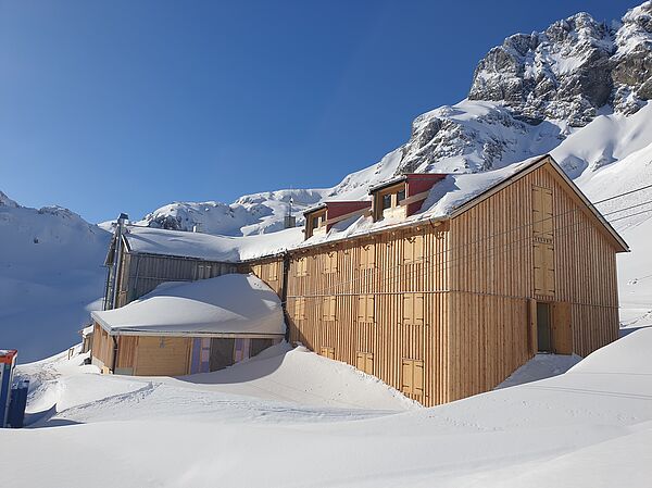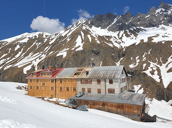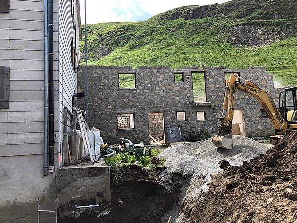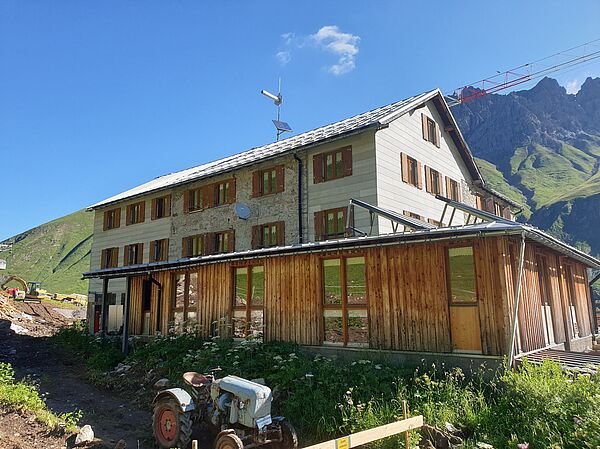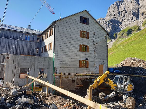 In den Jahren 2020-2022 wurde die Kemptner Hütte umfassend saniert und umgebaut. Dabei wurden vor allem Küchen-, Personal- und Lagerflächen vergrößert, die Schlafkapazitäten der Hütte aber nicht erweitert. Bei der Sanierung wurde darauf Wert gelegt, dass der Charakter der Hütte als einfache Bergunterkunft erhalten bleibt. Unsere kleine Bildergalerie von der Sanierung vermittelt einen guten Eindruck davon, wie komplex und herausfordernd ein Bauprojekt auf einer Berghütte ist. Die Sanierungsarbeiten wurden ausschließlich von lokalen Bau- und Handwerksbetrieben durchgeführt.