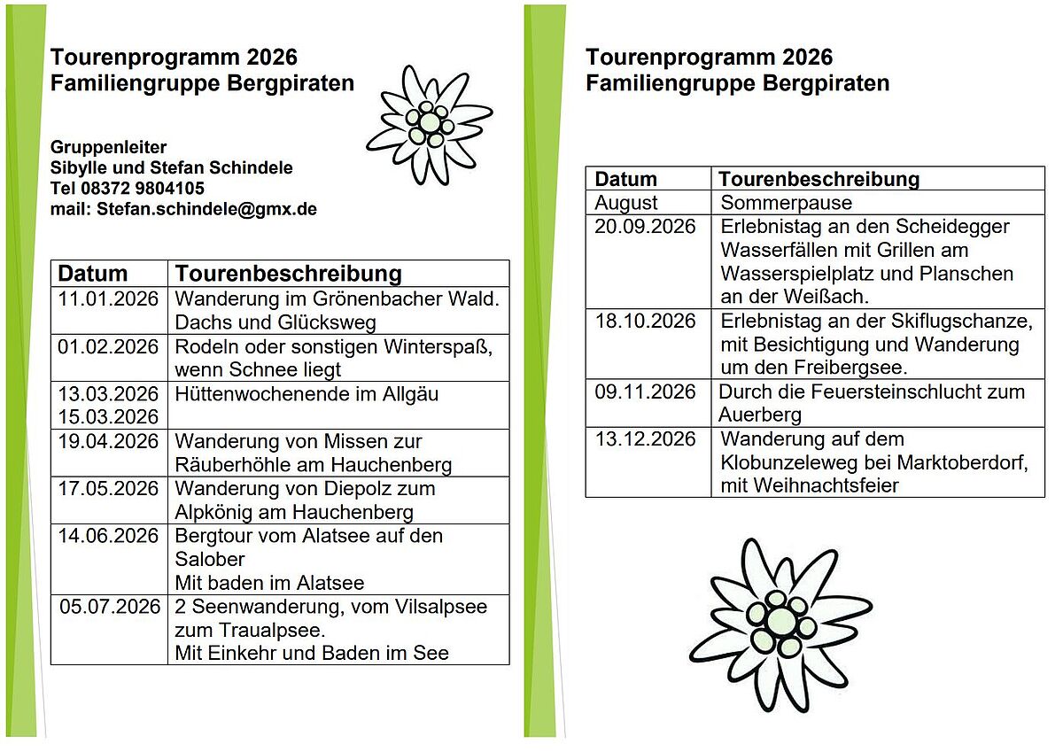 Für 2024 haben die Bergpiraten wieder ein interessantes und abwechslungsreiches Programm zusammengestellt.