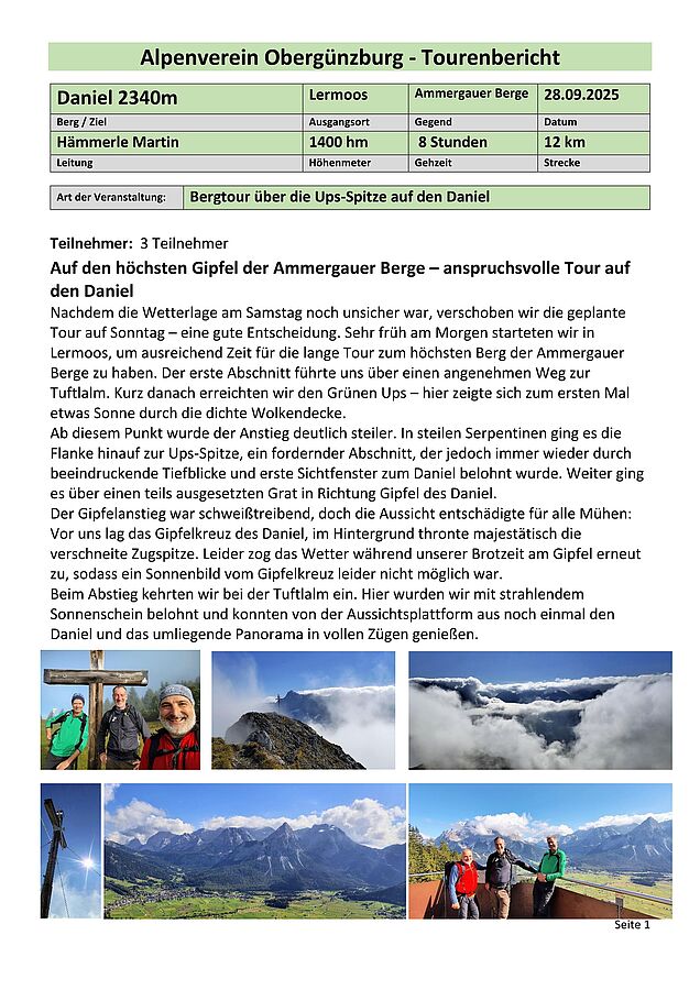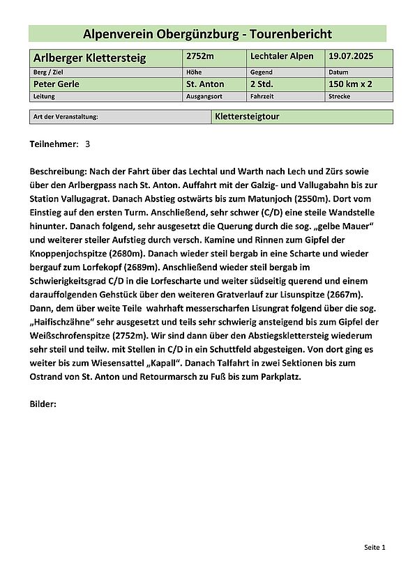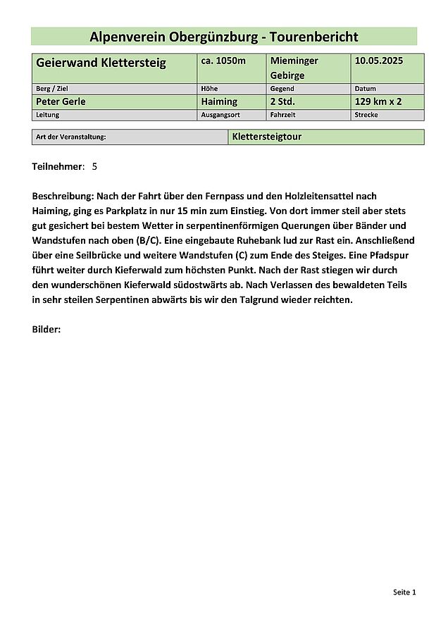 Gemeinschaftstour Klettersteig Geierwand bei Haiming am 10.05.2025