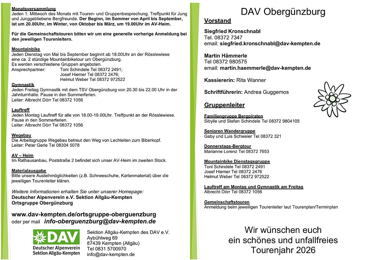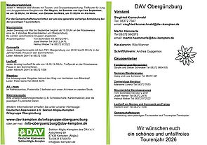 Ob Familiengruppenmitglied, aktiv bei den Senioren oder in der MTB-Gruppe. Bei den Gemeinschaftstouren der Ortsgruppe sind alle Sektions-Mitglieder herzlich willkommen. Sommer wie Winter sind wir in und um die Berge unterwegs, hier ist bestimmt für jeden etwas dabei
