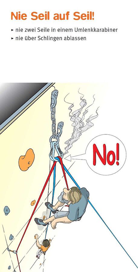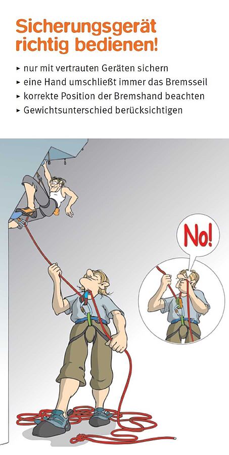 Vergewissere dich über die Sicherungskompetenz deines/deiner Kletterpartners/-partnerin – er/sie hält dein Leben in seiner/ihrer Hand! Vereinbare vor dem Kletterbeginn die Seilkommandos »Zu« und »Ab«.