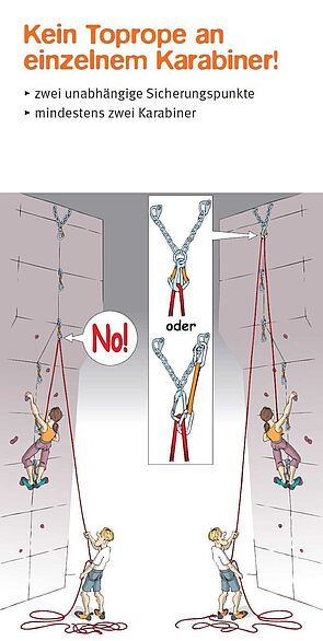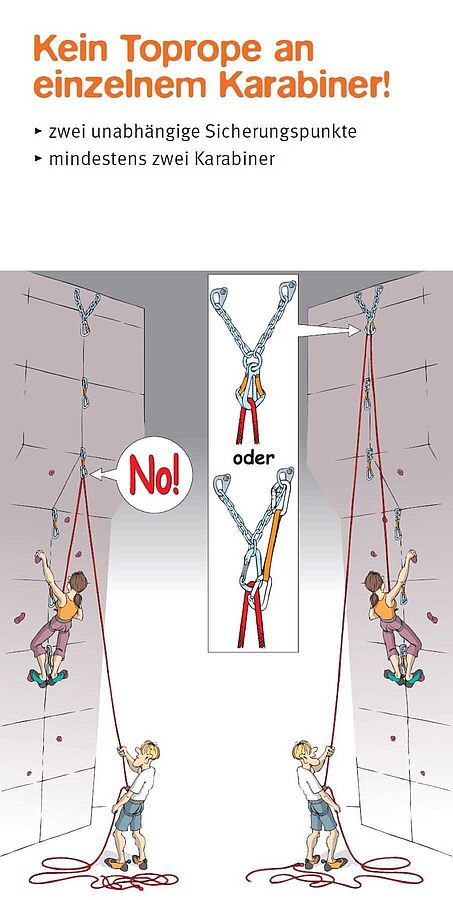 Hänge beim Top Rope Klettern das Seil immer in die dafür vorgesehene Umlenkung (im swoboda alpin: Edelrid Topper). Klettere nicht über die Umlenkung hinaus.