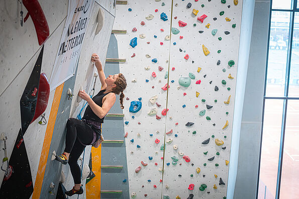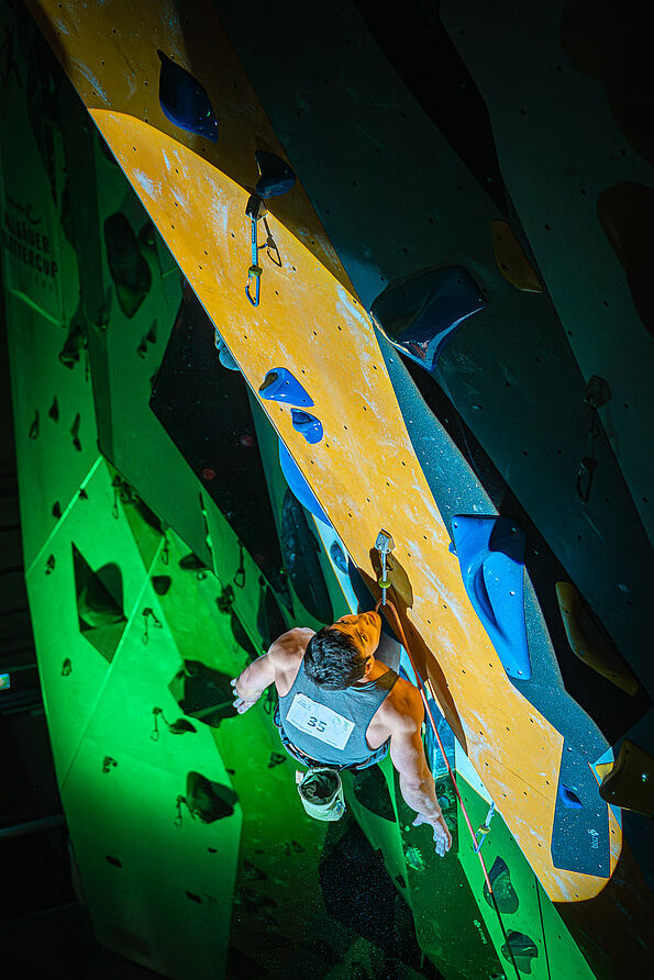 Finalquote: Die jeweils 8 (bei weniger als 20 Starter*innen: 6) punktbesten Damen und Herren nach der Qualifikation ziehen ins Finale ein. Finalquote Ü40, Ü55 und U15: 6 (bei weniger als 15 Starter*innen: 4) pro Klasse männlich/weiblich. U15 und Ü-Klassen starten im Finale auf den gleichen Routen und jeweils parallel m/w.