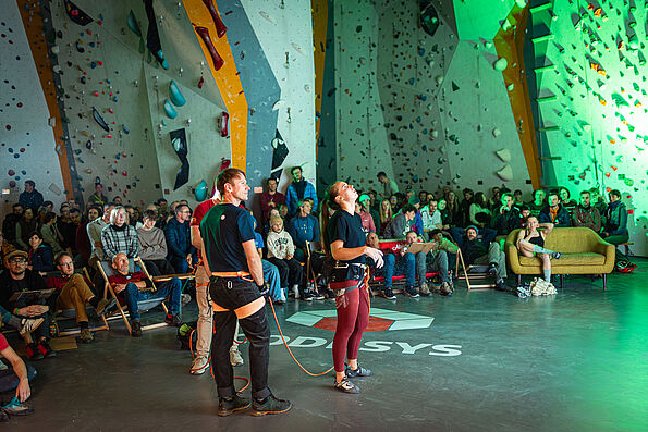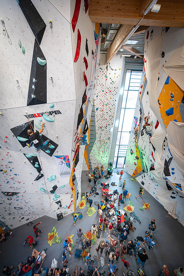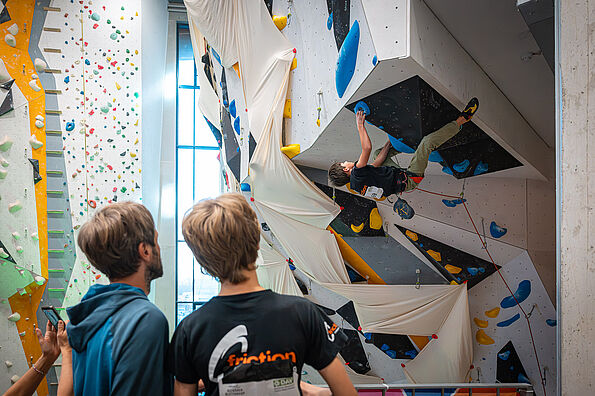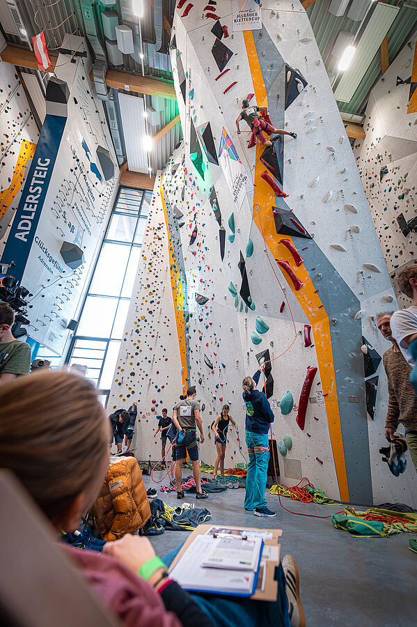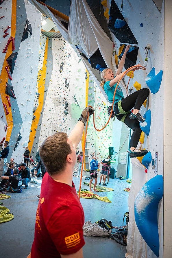 In der Qualifikation sichern sich die TN grundsätzlich gegenseitig, 4 Sicherungsassistent*innen stehen jedoch auf Abruf bereit. Seile liegen an allen Routen bereit. Persönliche Sicherungsassistent*innen können natürlich gerne auch mitgebracht werden :-)