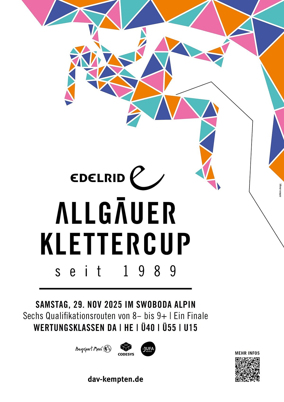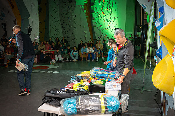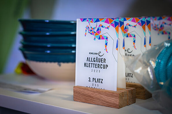 Preise: Pokale (Kässpatzenschüsseln custom made) & Sachpreise von Edelrid für die Klassensieger*innen, Pokale und Sachpreise für alle Podienkandiat*innen, Verlosung von Sachpreisen unter allen Teilnehmenden bei der Siegerehrung