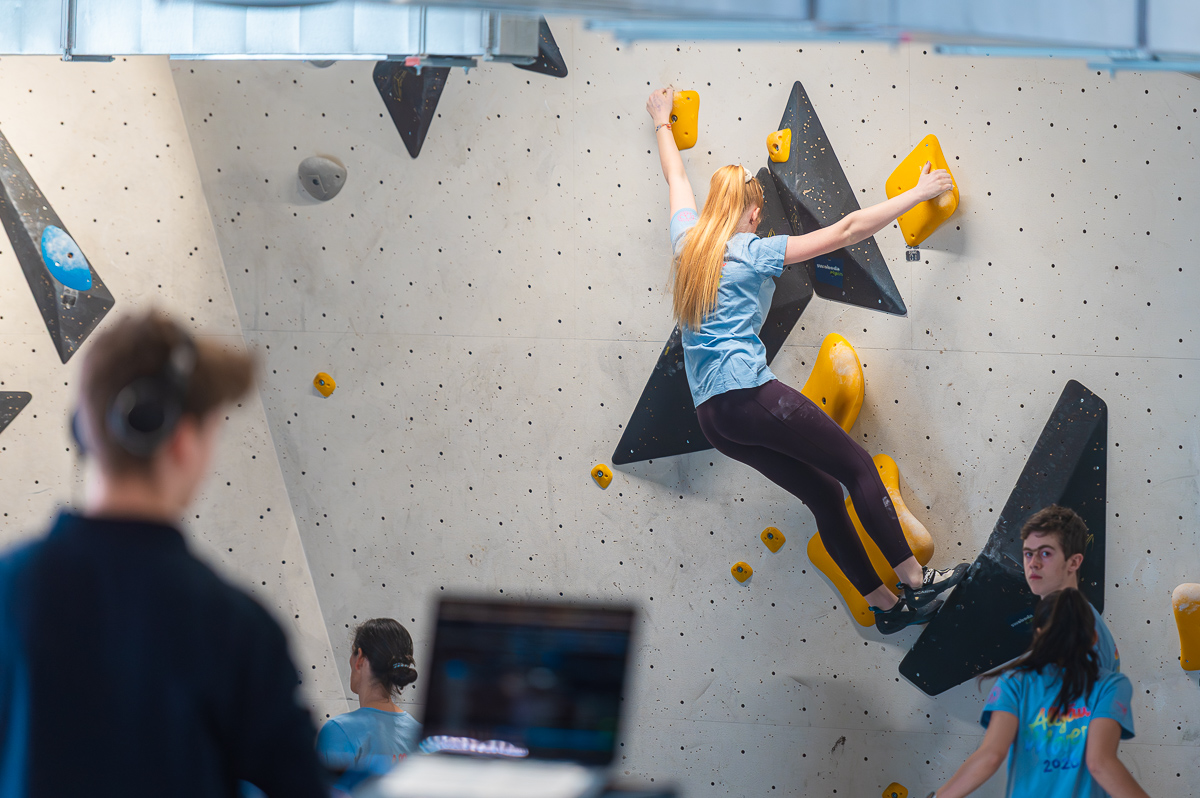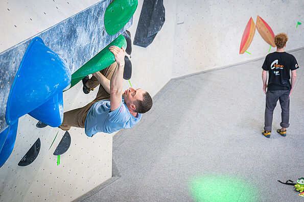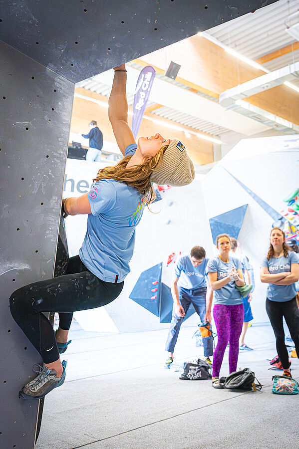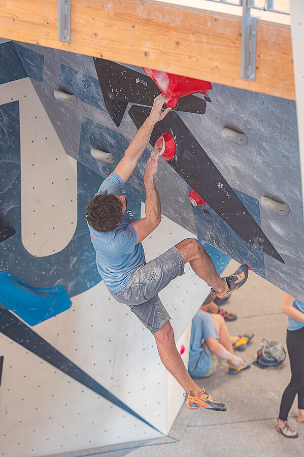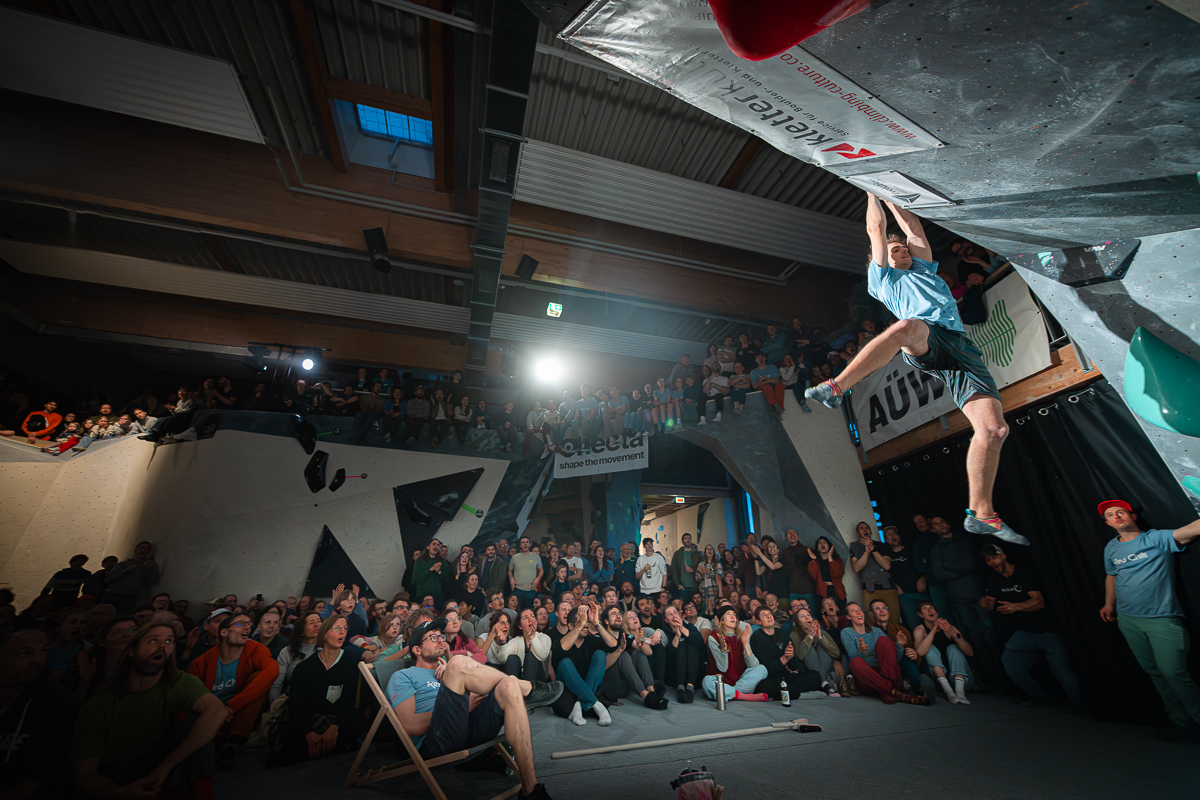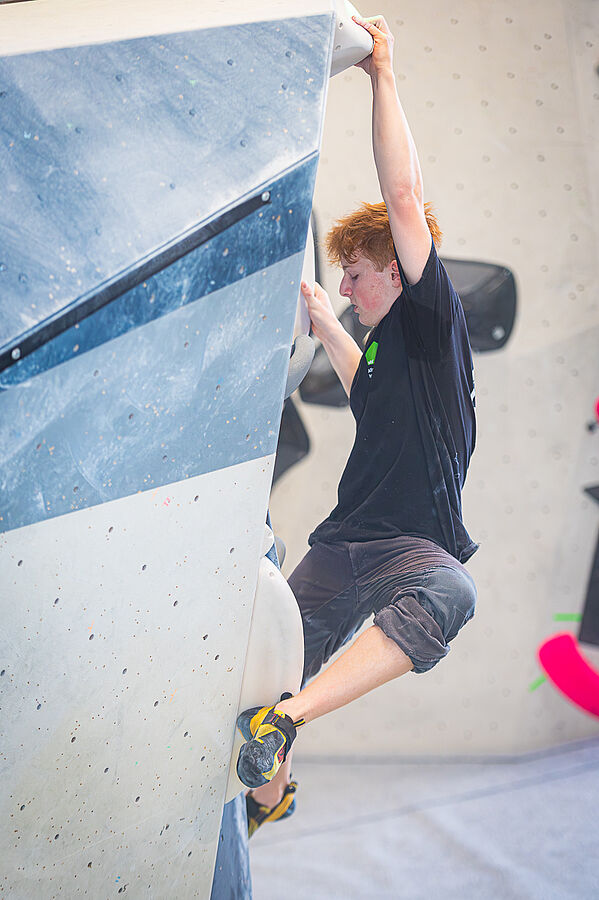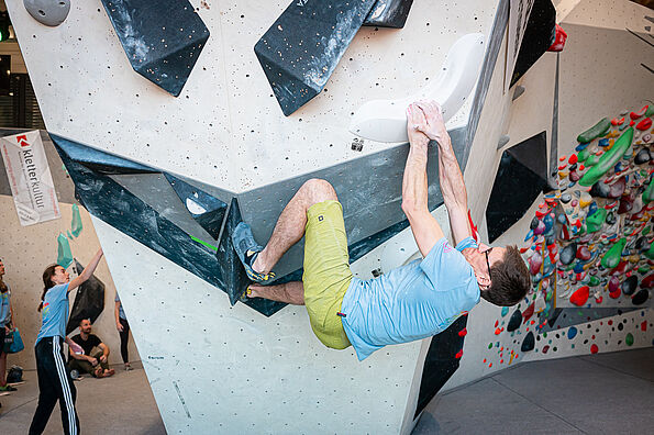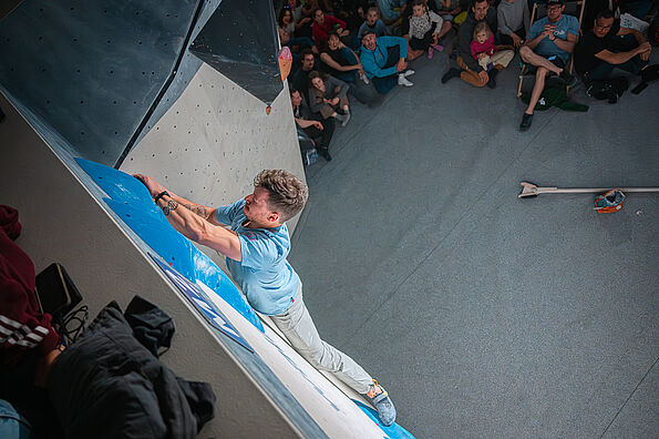 Beim Finalevent müssen die Teilnehmer*innen wieder möglichst viele der 35 neuen Boulder knacken – diesmal haben alle Boulder auch eine zusätzliche "Zonen"-Wertung und markierte Startpositionen für alle 4 Extremitäten. Nach Ende der Kletterzeit für das Halbfinale tragen alle Teilnehmer*innen ihre Boulder bis zum Ende des Scoringzeitraums ein. Danach stehen die besten 6 Damen und 6 Herren der offenen Klasse für das große Finale am Abend fest. Wenn es hier Jugendliche oder Ü40/Ü50-Starter unter die besten 6 schaffen, starten sie natürlich auch im Finale. Ansonsten werden die Ergebnisse der Altersklassen aus der Gesamtliste herausgerechnet.