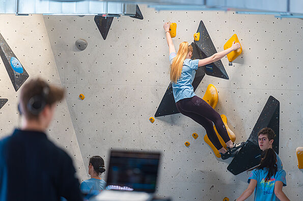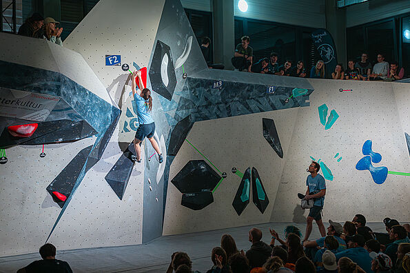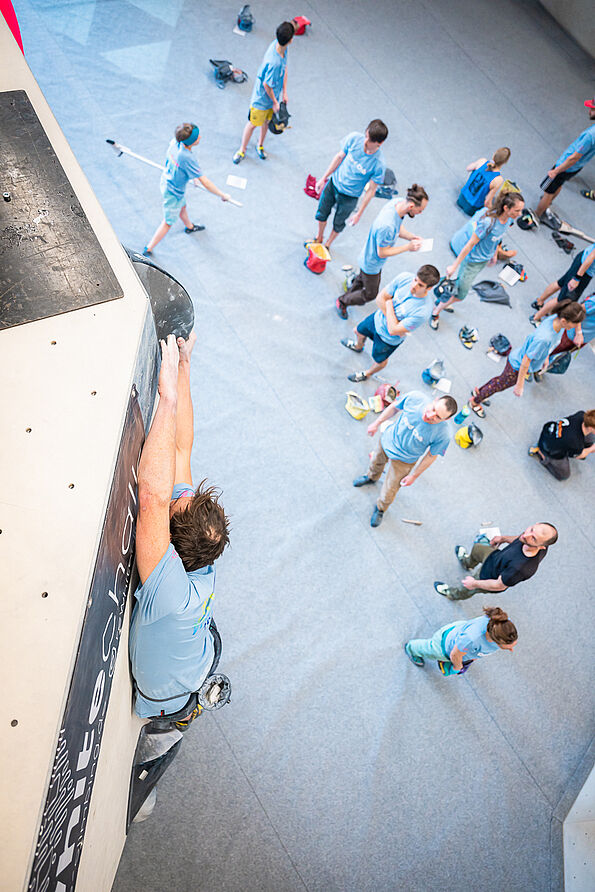 Im Finale der besten 6 übernehmen unsere Schiedsrichter das Scoring. Hier wird dann nach offiziellen DAV-Regeln geschiedst (Tops/Zonen, Versuche Tops/Versuche Zonen). Bei Gleichstand zweier Teilnehmer*innen auf einem Podiumsplatz gibt es ein Countback ins Halbfinale, dann in die Qualifikation.