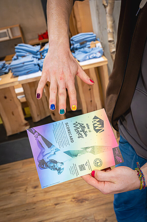 Vor dem Event: Hol dir deine Scorecard an der Kasse des swoboda alpins und registriere dich für die Teilnahme an den AÜW Allgäu Moves über den Link, der auf deiner Scorecard angegeben ist. Du kannst dich auch mit deinem Vertical-Life Account einloggen, wenn du bereits einen hast. Falls du noch keinen Vertical-Life Account besitzt, musst du dich neu registrieren. Einen Link zum Login fndest du oben rechts auf dieser Seite ("Sign in" ganz oben rechts auf der Seite von Vertical Life). Nach dem Login registrierst du dich für das Event und wählst deine Wertungskategorie (Damen/Herren/Jugend/Ü40/Ü50) aus. Wichtig: Wenn du bereits einen Vertical-Life Account besitzt, prüfe, ob dein Geburtsjahr angegeben ist. Sobald die Qualifikationsphase startet (am 13.1.2026), ist die Tickliste der aktuell an der Wand befindlichen Boulder freigegeben. Dann kannst du deine gekletterten Boulder eintragen. Auf der Vertical-Life-Eventseite siehst du auch immer das aktuelle Ranking des Wettkampfs.