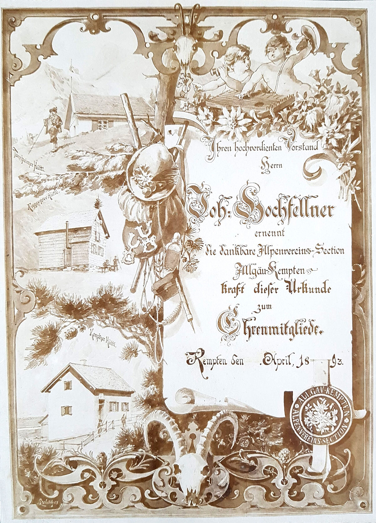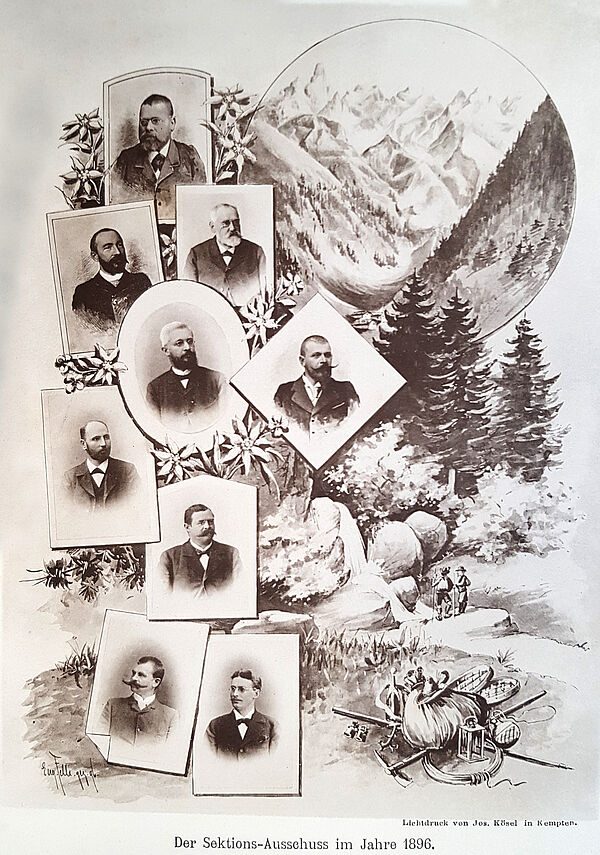 Wenig später bremste zunächst der Krieg mit Frankreich die Überlegungen der Kemptner, eine eigenständige Sektion zu gründen. So dauerte es noch bis zum 6. September 1871, als ein kleiner Kreis von Bergfreunden auf der Burghalde die Gründung einer eigenen Sektion beschloss. Sie sollte den Namen "Allgäu" tragen und ihren Sitz in Kempten haben. Damit war der Sektionsname "Sektion Allgäu-Kempten" geboren, der so auch bis heute im Vereinsregister steht. Dieser etwas sperrige Namen führt allerdings immer wieder zu Missverständnissen und Schreibfehlern: So liest man häufig fälschlicherweise "Sektion Kempten (Allgäu)" oder einfach nur "Sektion Kempten". Den Gründern und ihren Nachfolger*innen war und ist es aber wichtig, dass der Verein eine Sektion für das gesamte Allgäu und nicht nur für dessen Metropole Kempten ist. Aus der gleichen Motivation heraus gab sich unsere südliche Nachbarsektion im Gründungsjahr 1877 den Vereinsnamen "Allgäu-Immenstadt".